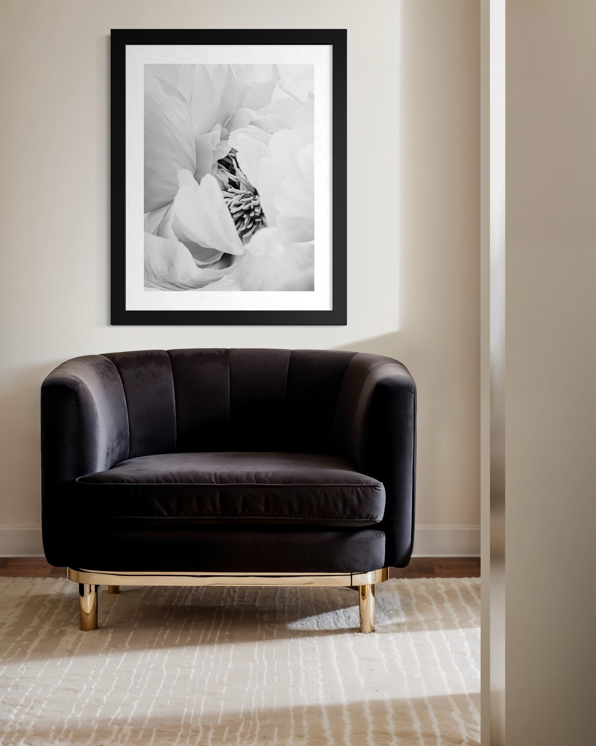 Bring quiet elegance to your space. Heart of the Peony is a striking black and white photograph that captures the center of a single peony bloom in stunning detail.