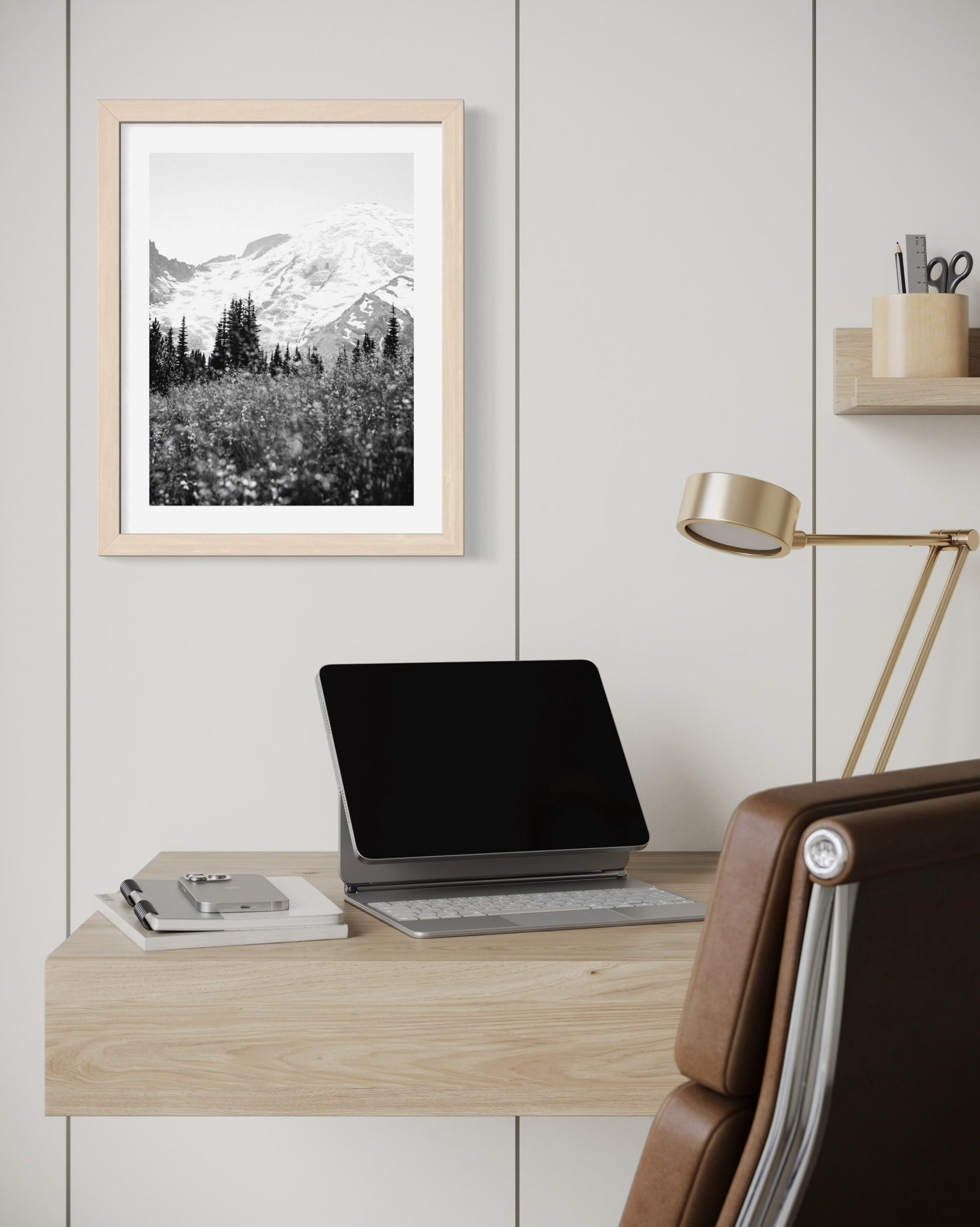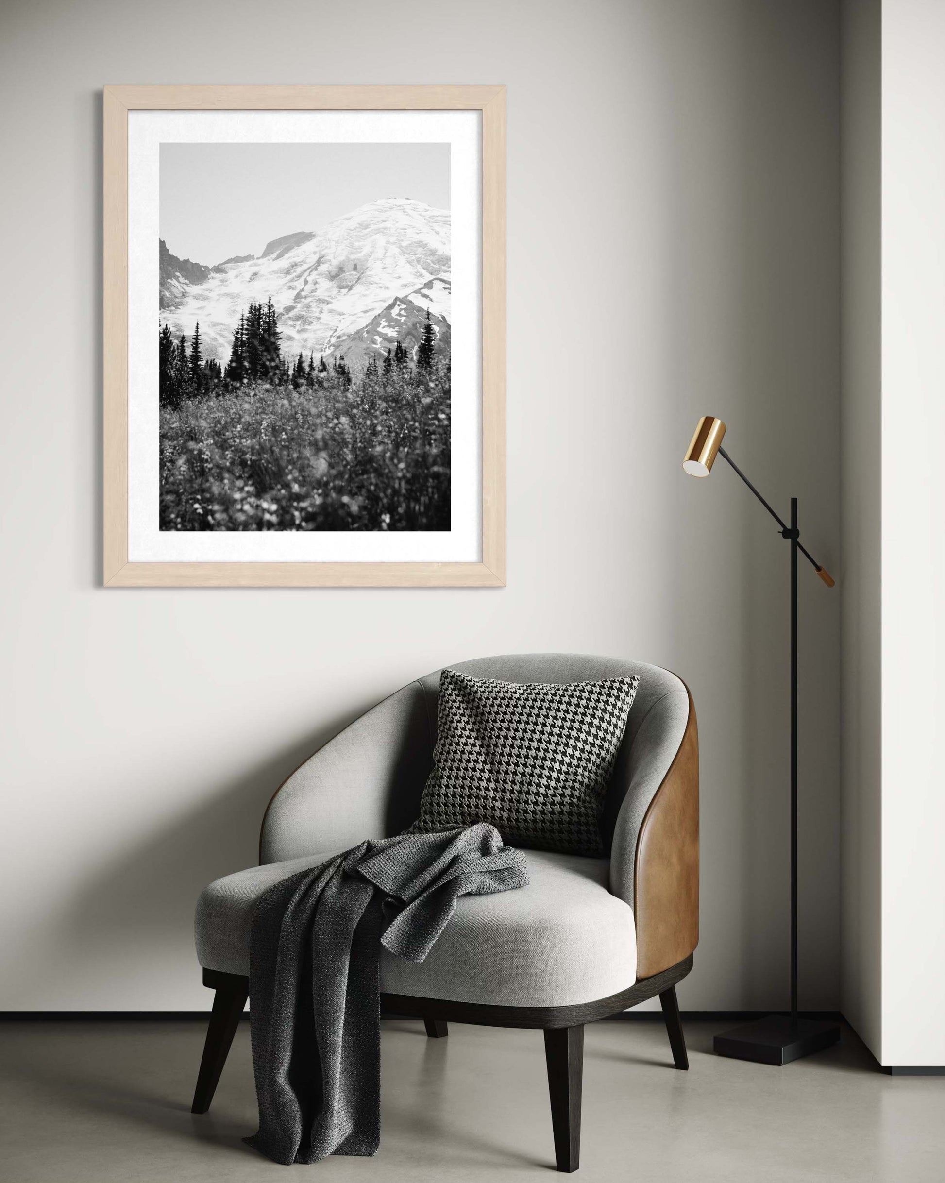 Breathe in a quiet summer moment with this timeless photograph of Mount Rainierâwildflowers in bloom, Mount Rainier rising gently in the distance.