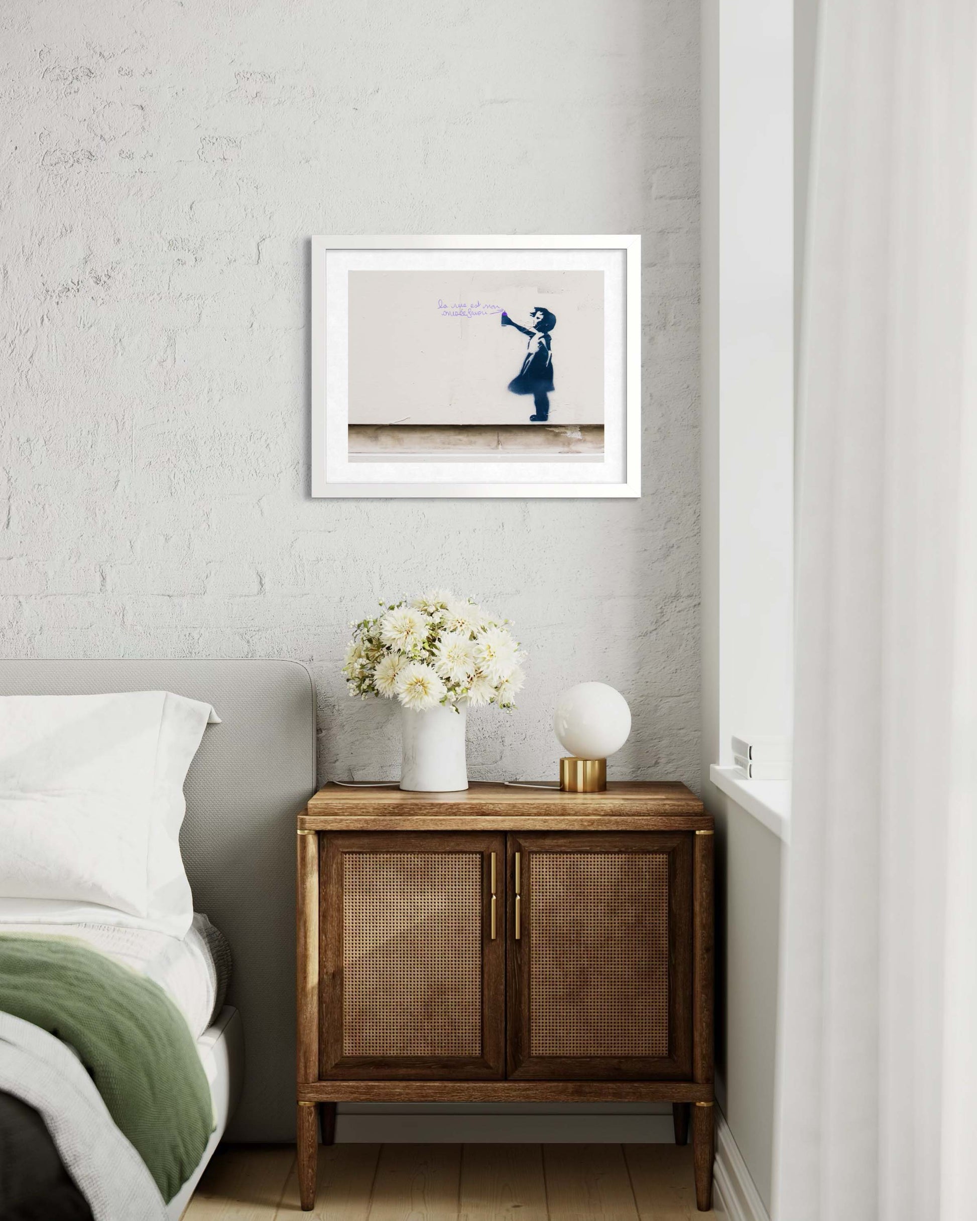 Celebrate Parisian Street art with a fleeting moment in the Latin Quarter â a Banksy stencil of a little girl declaring, âThe street is my favorite museum.â This piece appeared overnight on a quiet corner and vanished just as quickly, making this image a rare glimpse into the ever-changing canvas of Paris.